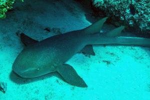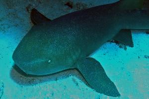 Ammenhaie sind träge, boden- bewohnende Haie. Zur Beute der nachtaktiven Jäger gehören diverse Wirbellose, wie zum Beispiel Seeigel, Langusten, Krabben und Kraken. In 20m Tiefe und mit einem Abstand von 2m entstand das Foto.