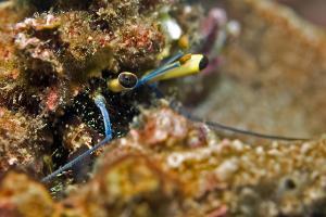 Diese Tiere stehen 30 cm über dem Boden und su- chen nach Plankton.Bei Gefahr verschwinden sie in ihren Höhlen. Sie leben paarweise oder in kleinen Gruppen.In einer Tiefe von 21m gelang die Aufnahme aus 40 cm Entfernung.