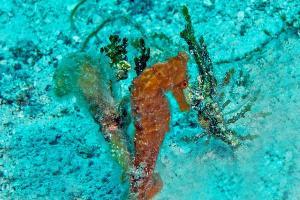 Diese Seepferdchenart wird bis zu 15cm groß. Bei der Fortpflanzung werden etwa 250 Eier vom Weibchen dem Männchen in die Bruttasche gelegt. Die Geburt findet dann nach ca.4 Wo. statt. In 12m Tiefe und 20 cm Abstand entstand das Foto.